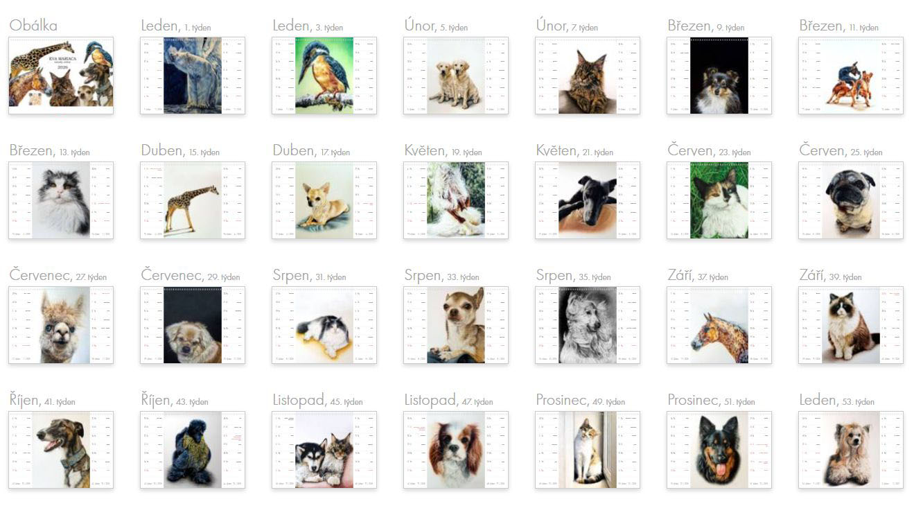 Tento kalendář mohl vzniknout díky vám, mým zákazníkům. Jsou v něm vaše kresby, které jste si u mě objednali. Moc za to děkuji, za skvělou spolupráci, která vyvrcholila kalendářem, ze kterého mám obrovskou radost! Věřím, že radost bude po celý příští rok dělat i vám.
